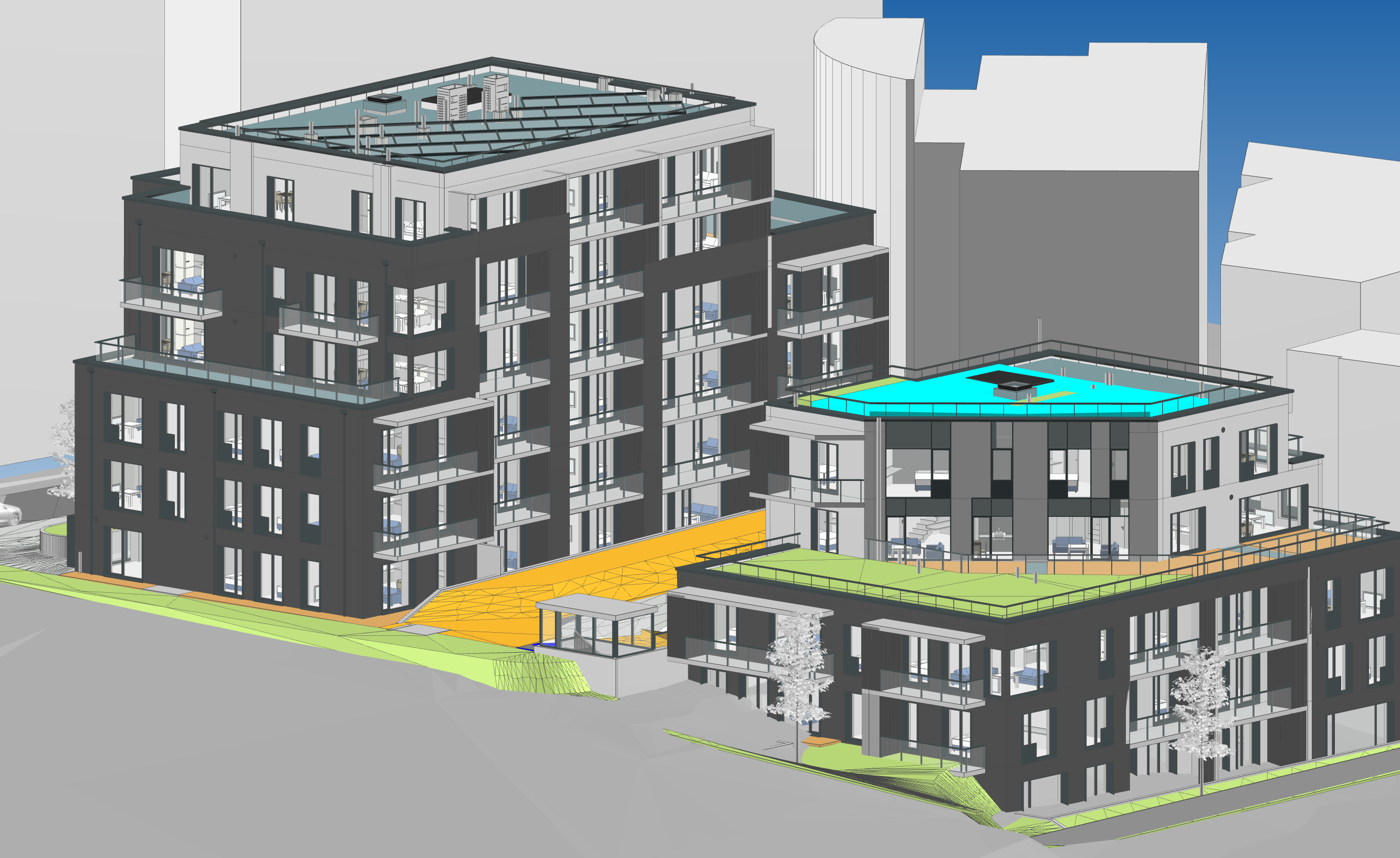 The structures of these residential buildings consist of a monolithic foundation and an underground parking lot, wall structures, columns, beams, floor slabs and purlins, all of which are prefabricated elements with a total height above the foundation of 17.45 m. When working on projects of this type, we pay special attention to local producers, the requirements of the producers of steel structures and prefabricated elements and their nomenclature, which subsequently allows us to correctly organize the logistics and deliver them to the construction site at the lowest cost.
